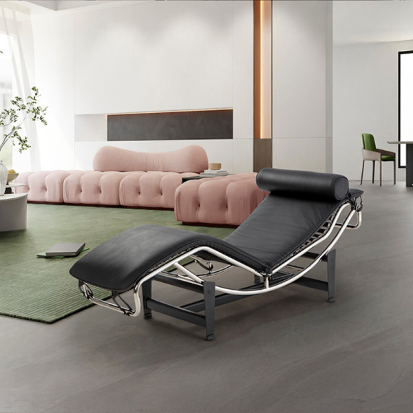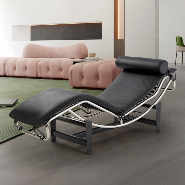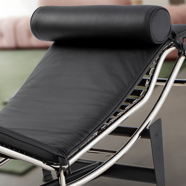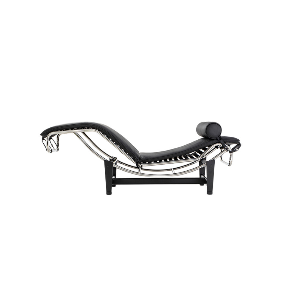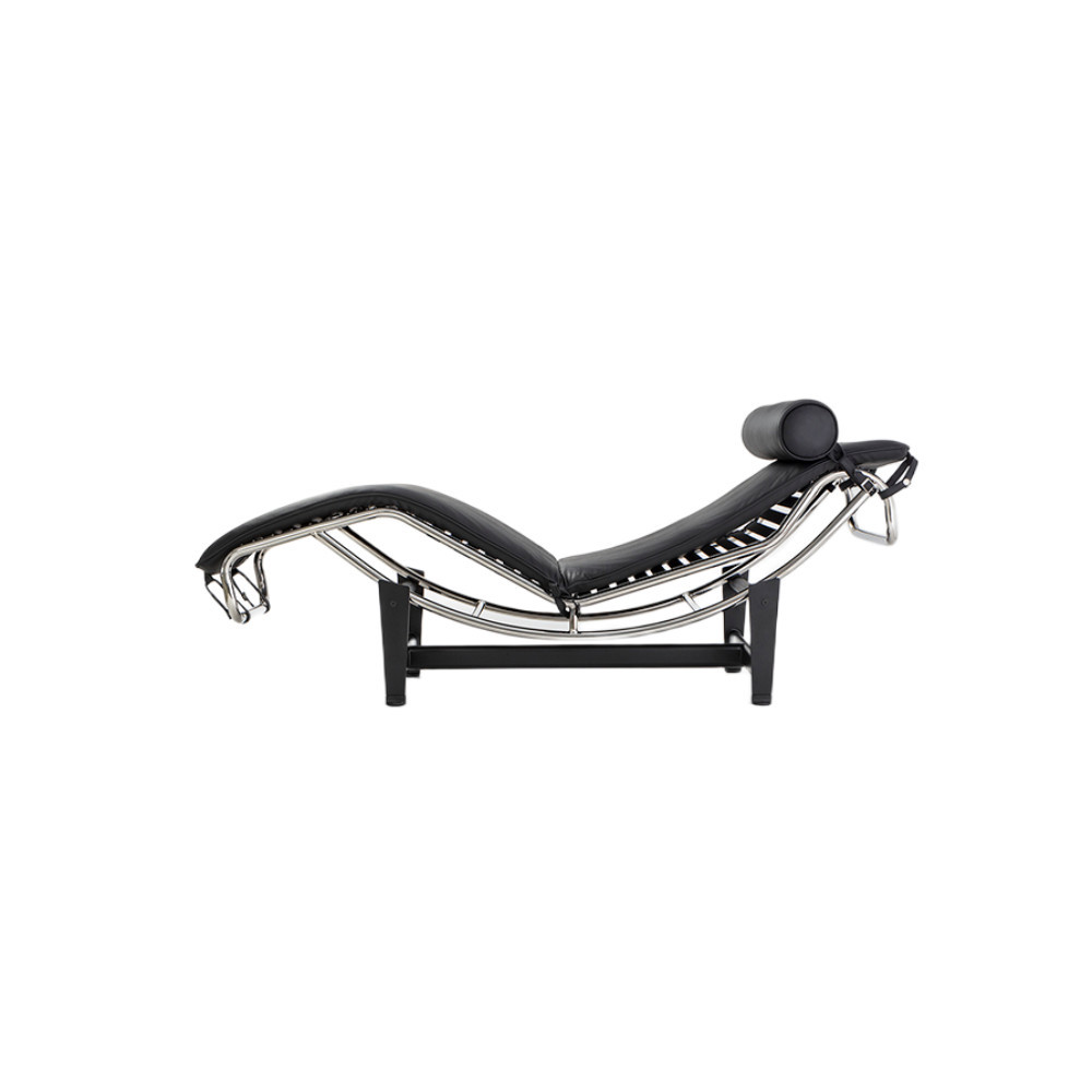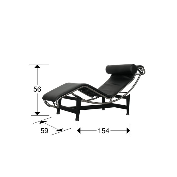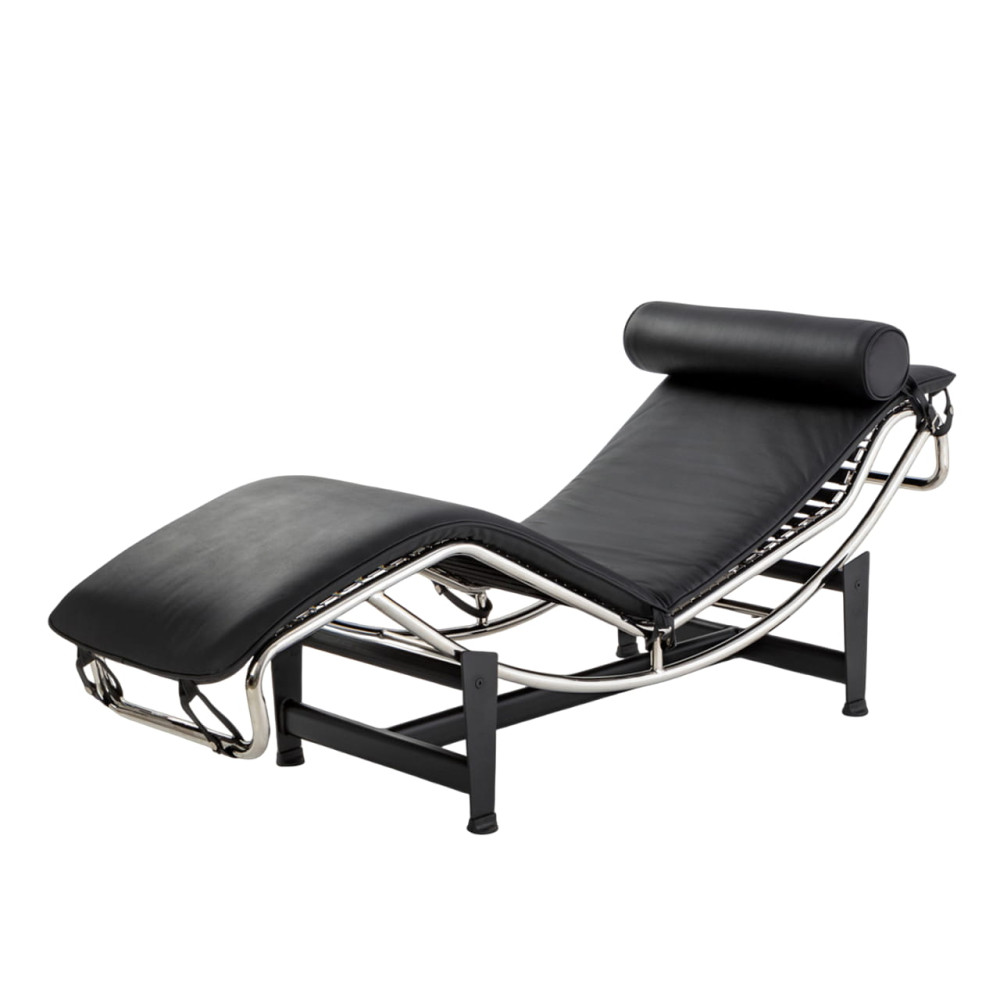 Chaise longue con estructura en acero acabado cromo y base de metal en acabado negro.