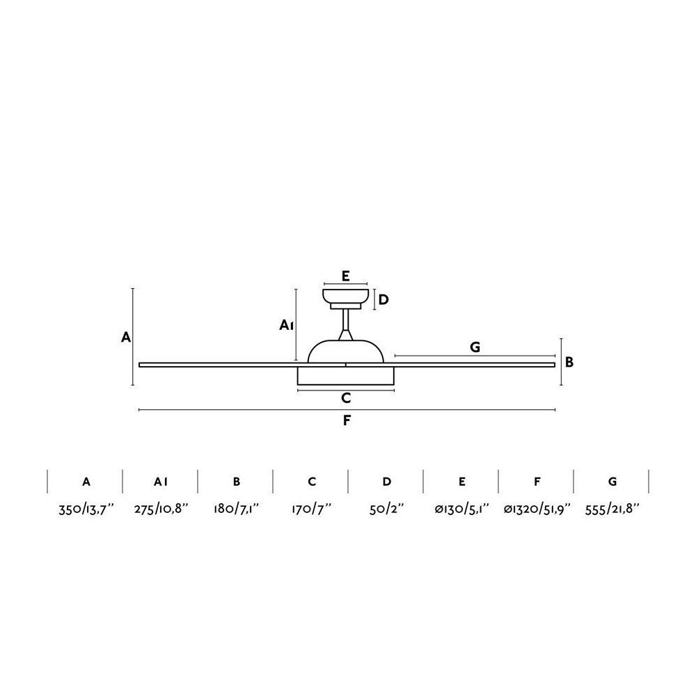 Es muy importante escoger la dimensión correcta del ventilador teniendo en cuenta el tamaño de la estancia. Este ventilador talla "L" es ideal para estancias de entre 17,6 y 28 m² ya que tiene un diámetro de Ø132-164cm.