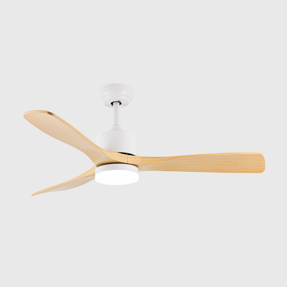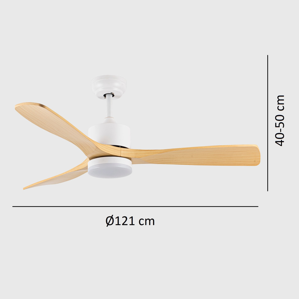 Ventilador de techo blanco y haya con luz CCT motor DC Ø121cm 2350lm