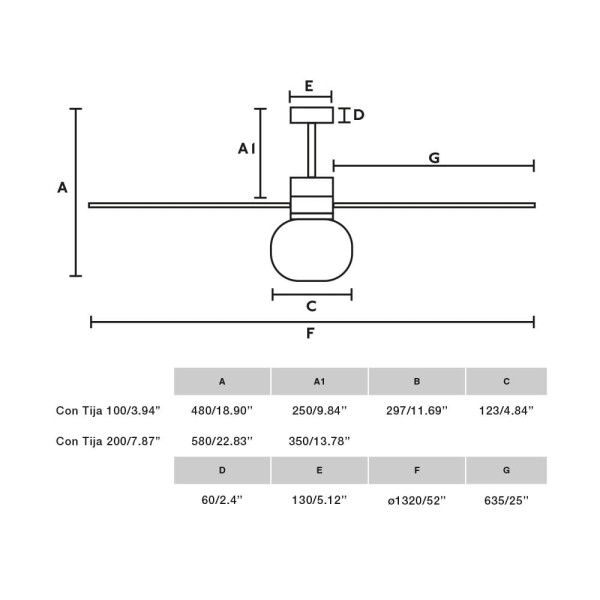 Este ventilador incluye 1 tija adicional con una longitud de 200mm.