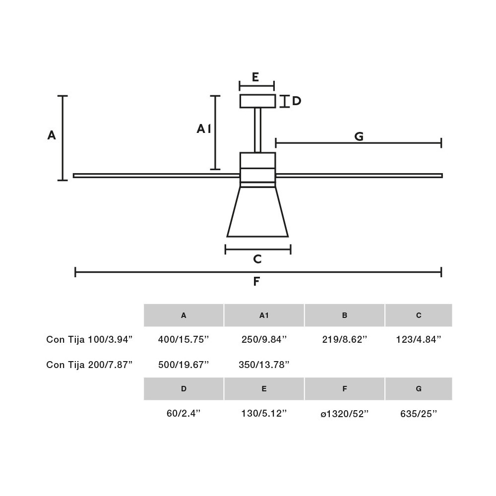 Este ventilador incluye 1 tija adicional con una longitud de 200mm.
