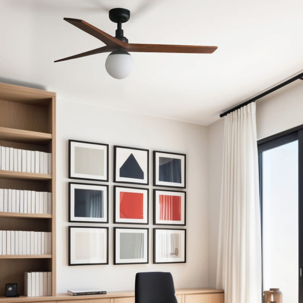 Ventilador M E27 negro-nogal Ø1250 con motor DC, temporizador y función inversa.