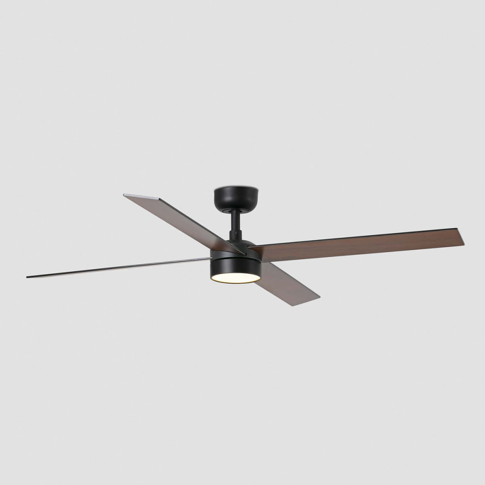 RUDDER L es un ventilador de techo negro diseñado por Faro Lab ultra compacto. Sus palas son reversibles, permitiendo escoger entre un acabado completo en negro o una combinación de negro y acabado en nogal.