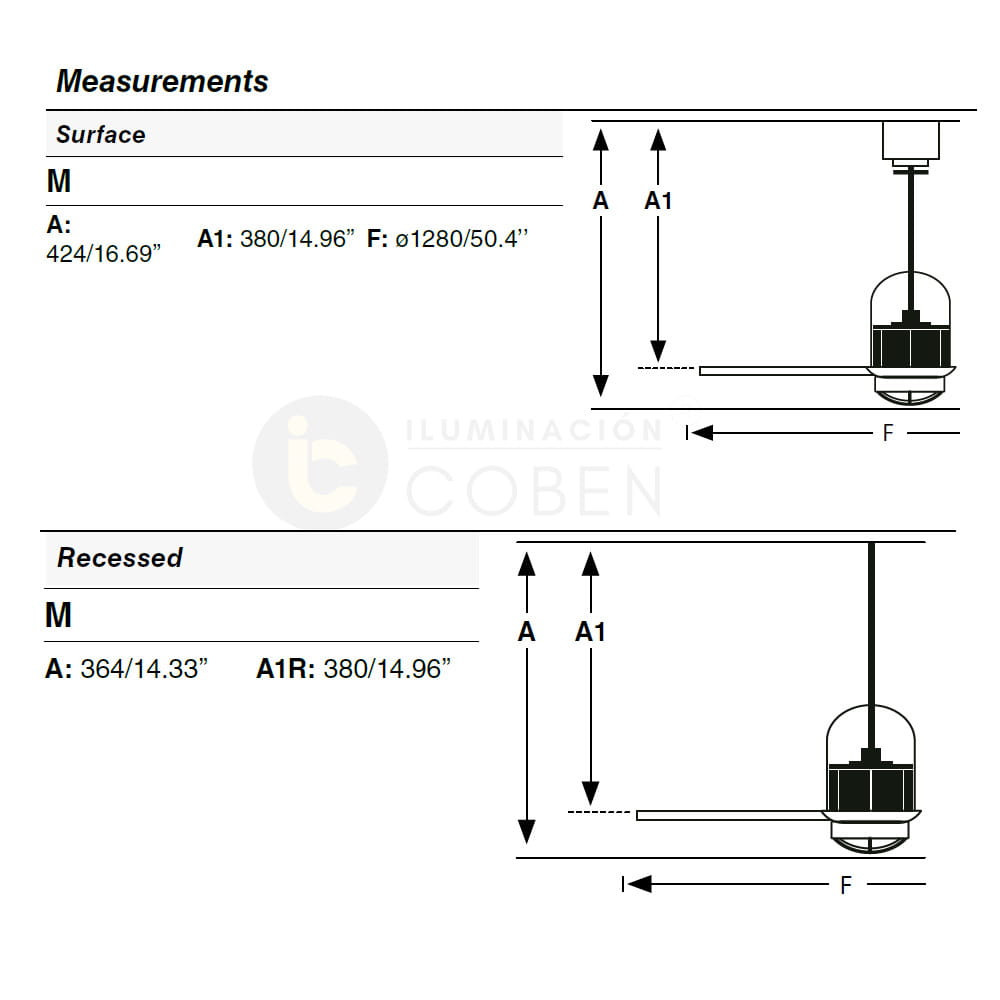 Es muy importante escoger la dimensión correcta del ventilador teniendo en cuenta el tamaño de la estancia. Este ventilador talla "M" es ideal para estancias de entre 13 y 17,6 m².