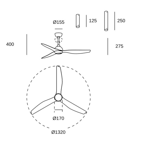 Ventilador Pam ø1320mm IP20 LED 20W CCT 3000-4000-5000K ON-OFF Blanco 2875lm