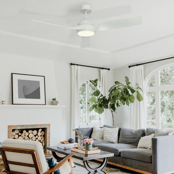 Ventilador de techo blanco IP20 con luz led CCT motor DC Ø132cm.