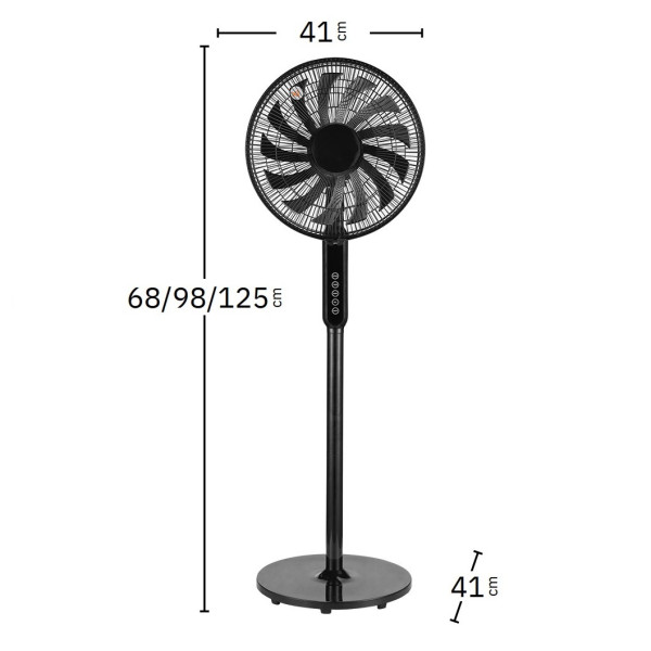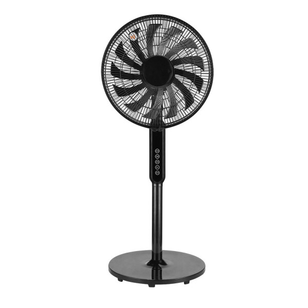 Ventilador de pie blanco con 3 velocidades, base táctil, mando incluido, pantalla digital, altura regulable y temporizador.