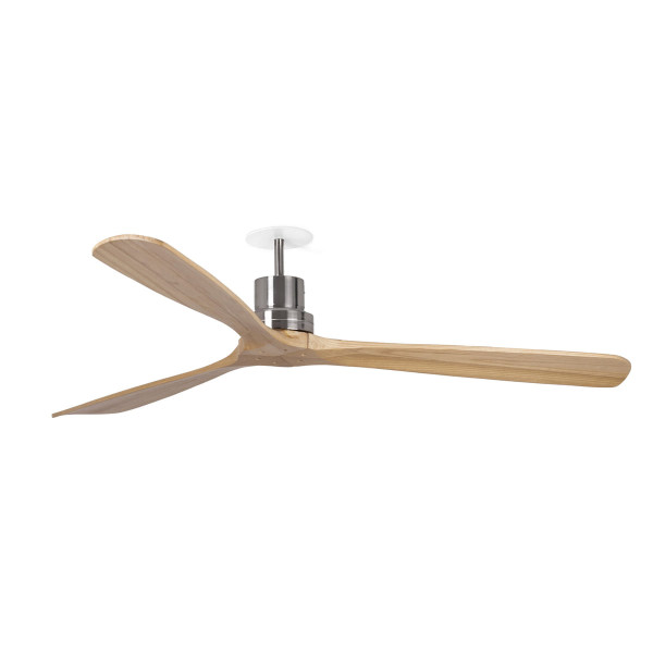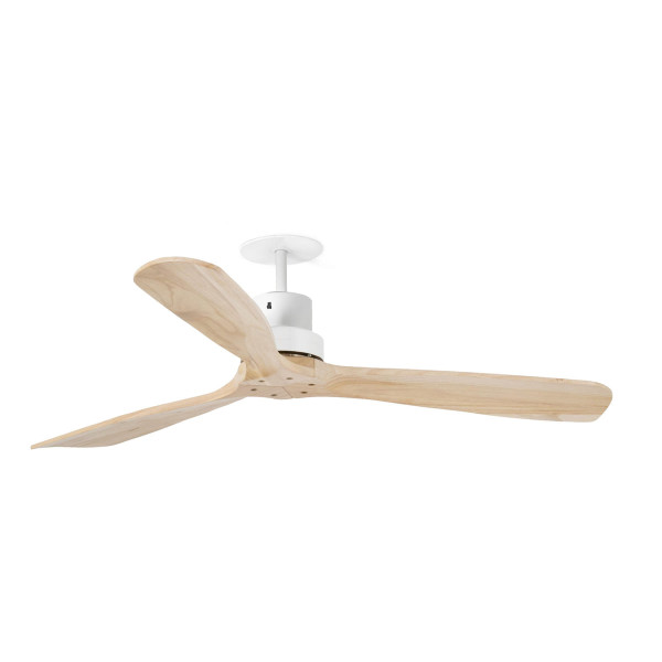 Ventilador de techo empotrado de Ø92 cm con luz E27, acabado blanco/pino. Motor DC, 6 velocidades, función inversa, mando y temporizador