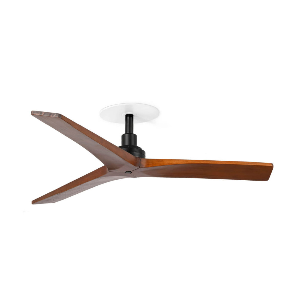 Este sistema empotrado permite ocultar el florón en el interior del techo, lo que reduce considerablemente la altura total del ventilador. Una ventaja especialmente útil en estancias con techos bajos o cuando buscas un diseño más minimalista. Y si necesitas ajustar la caída, puedes hacerlo con nuestro sistema de tijas opcionales, diseñado para adaptarse al milímetro a cada proyecto.