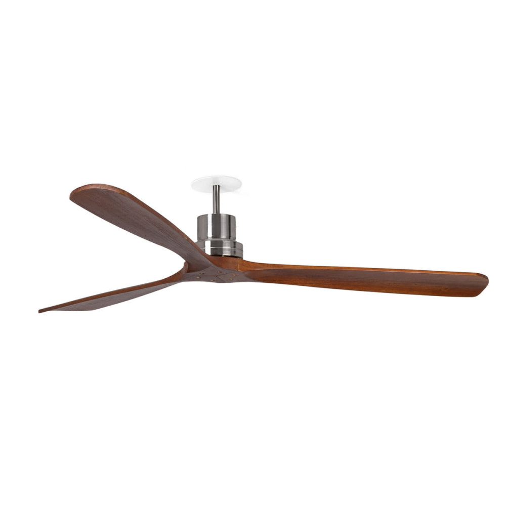 Ventilador empotrado sin luz de Ø132cm níquel-nogal con palas de madera, motor DC, mando y función inversa.