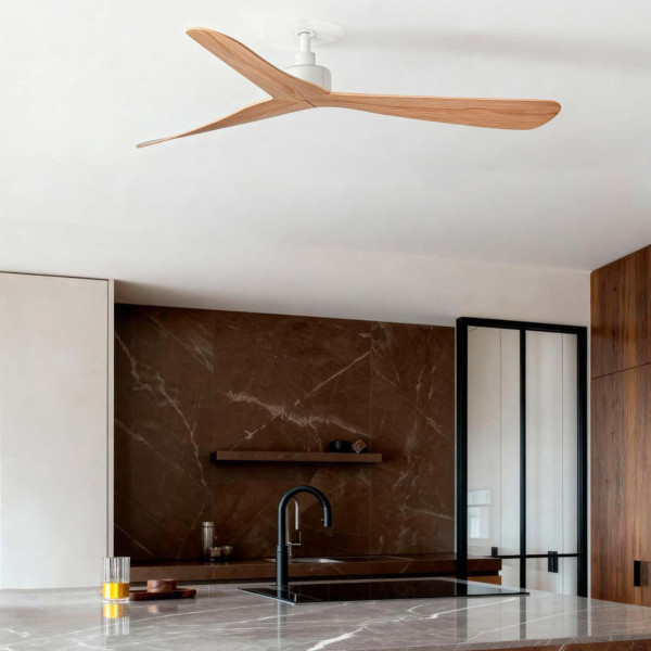 Ventilador empotrado sin luz de Ø132cm blanco-fresno con palas de ABS, motor DC, mando y función inversa.