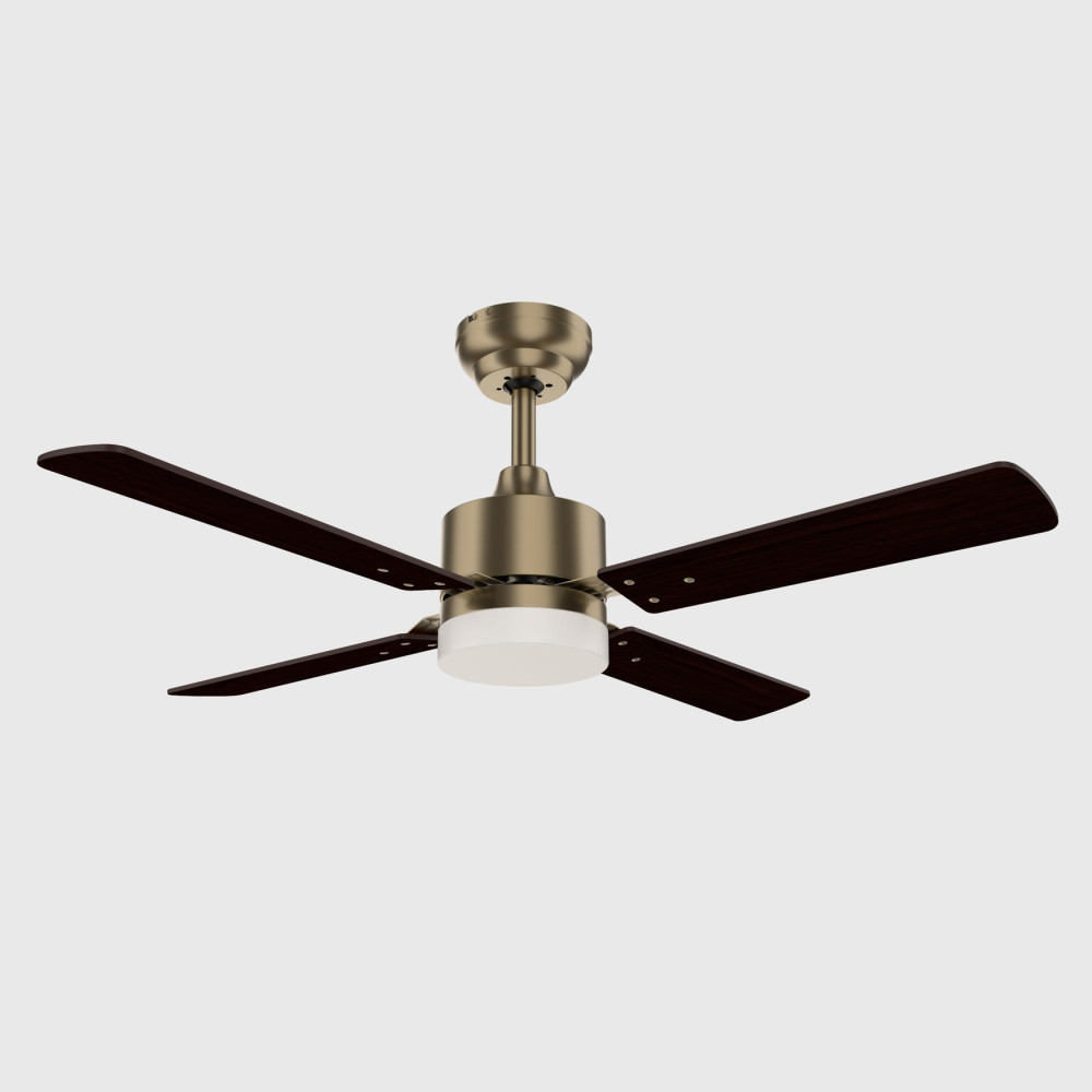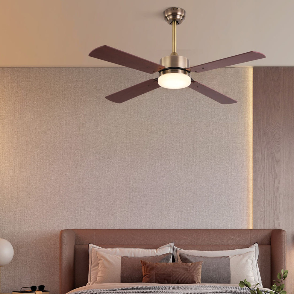 Ventilador blanco con luz CCT, motor DC, 6 velocidades, temporizador, dos tijas y palas reversibles
