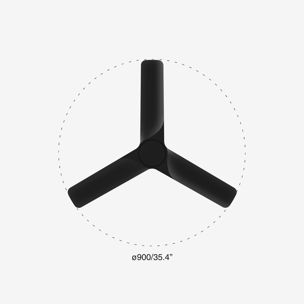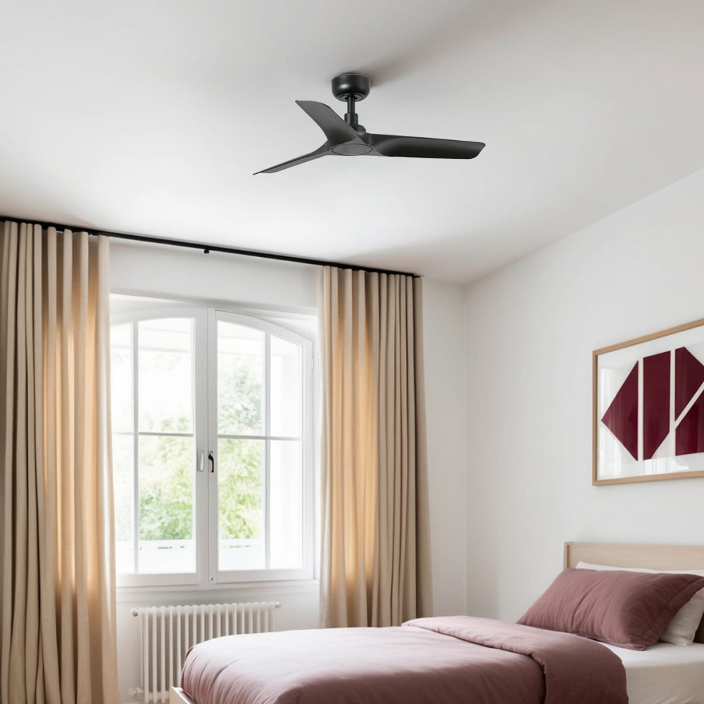Ventilador negro sin luz de Ø90cm con motor DC, temporizador y función inversa.
