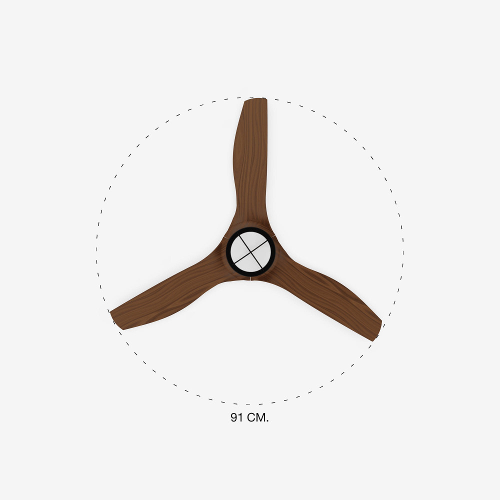 Es muy importante escoger la dimensión correcta del ventilador teniendo en cuenta el tamaño de la estancia. Este ventilador talla "S" es ideal para estancias menores de 13 m² ya que tiene un diámetro menor a Ø106 cm.
