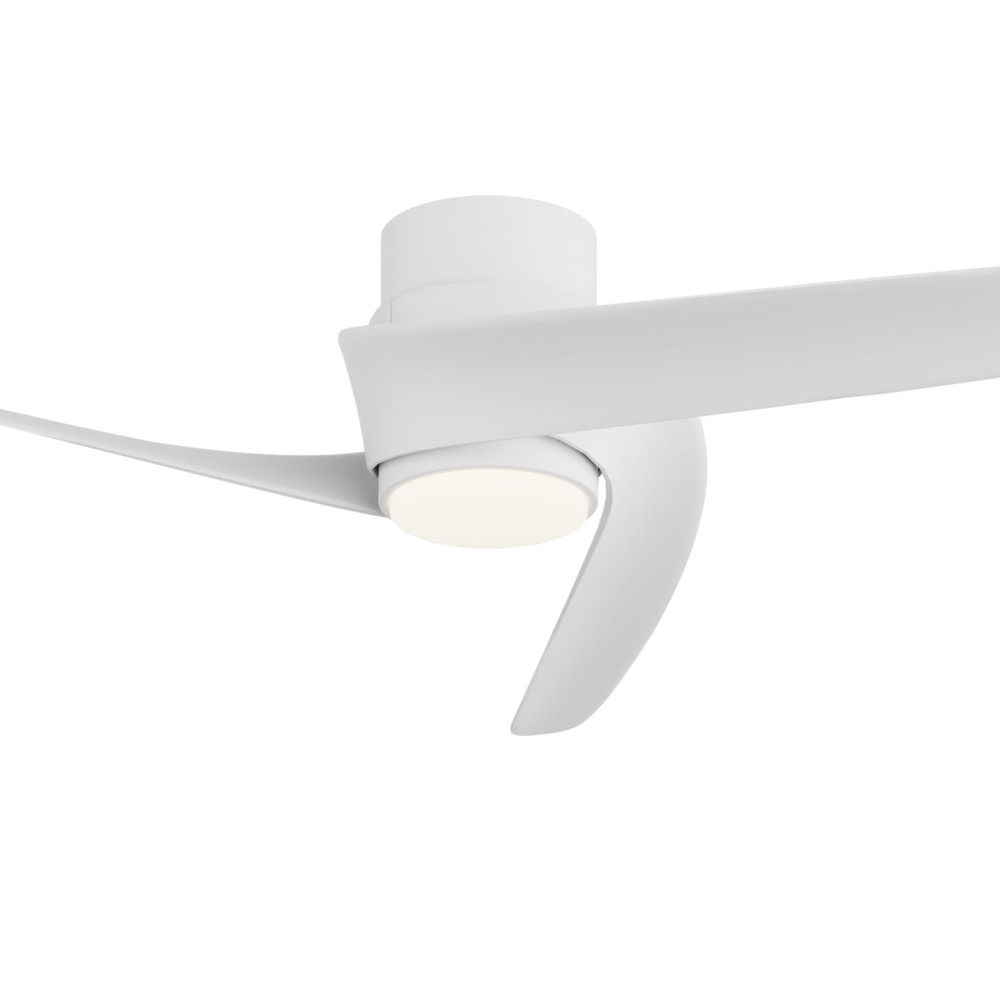 Ventilador acabado en blanco con luz LED CCT regulable, motor DC, función inversa y temporizador.