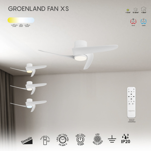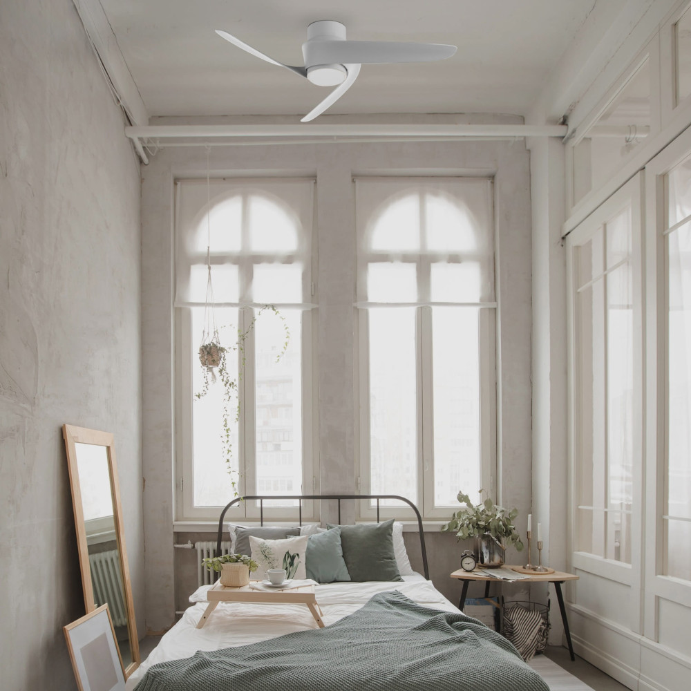 Ventilador de techo LED acabado en blanco combina diseño elegante y funcionalidad avanzada para aportar confort y estilo a cualquier espacio interior. Su acabado crea una estética moderna y natural que se integra fácilmente en salones, dormitorios o espacios contemporáneos.