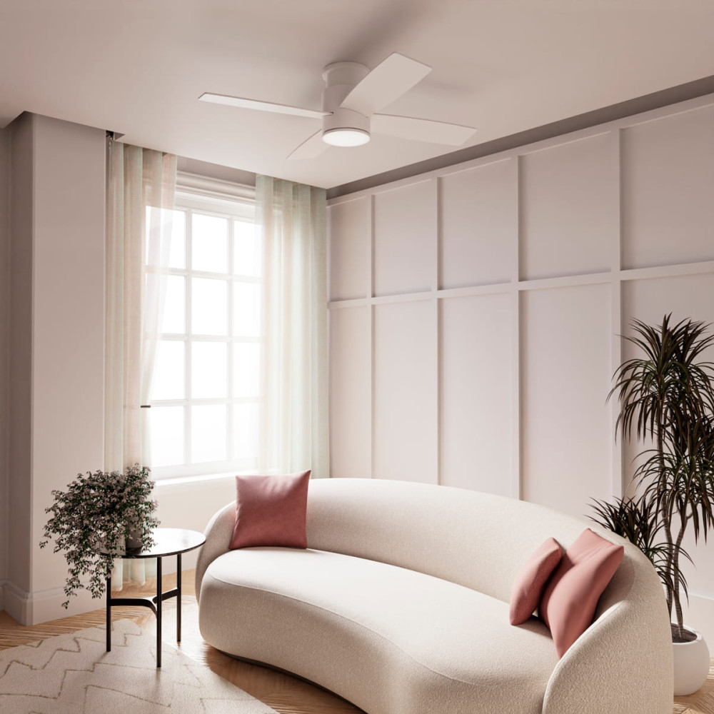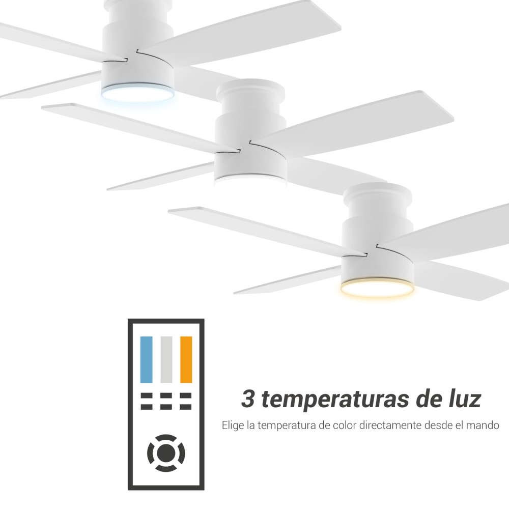 Ventilador de Ø106cm negro ideal para techos bajos, con o sin luz LED CCT regulable.