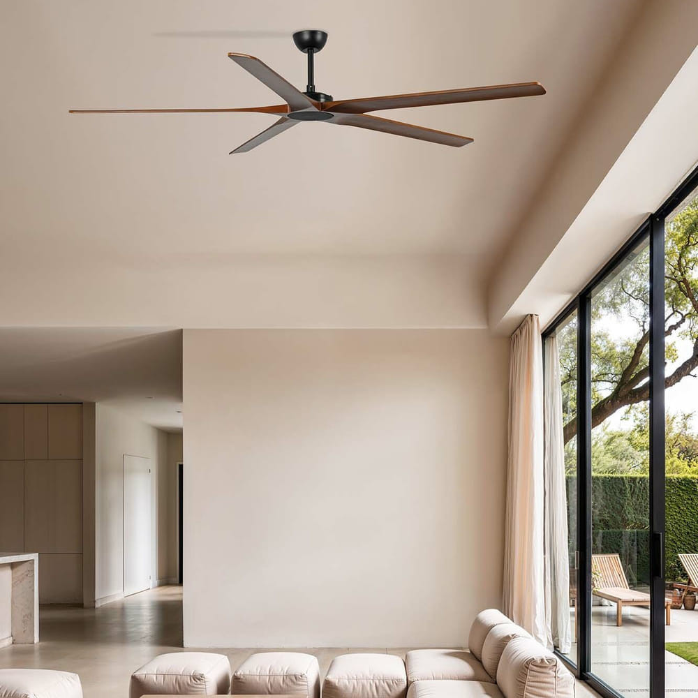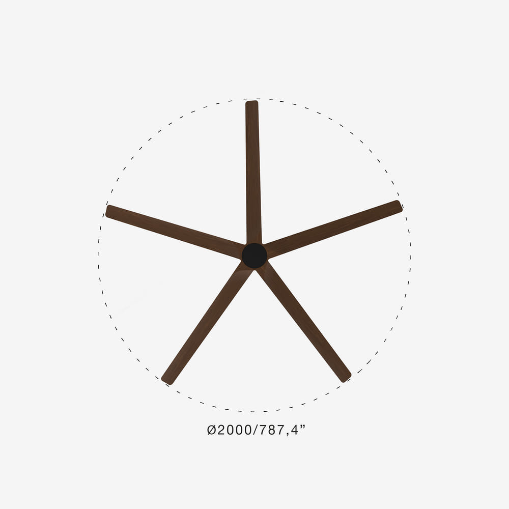 Ventilador XXL negro-nogal de 2 metros de diámetro. Motor DC, temporizador y función inversa.