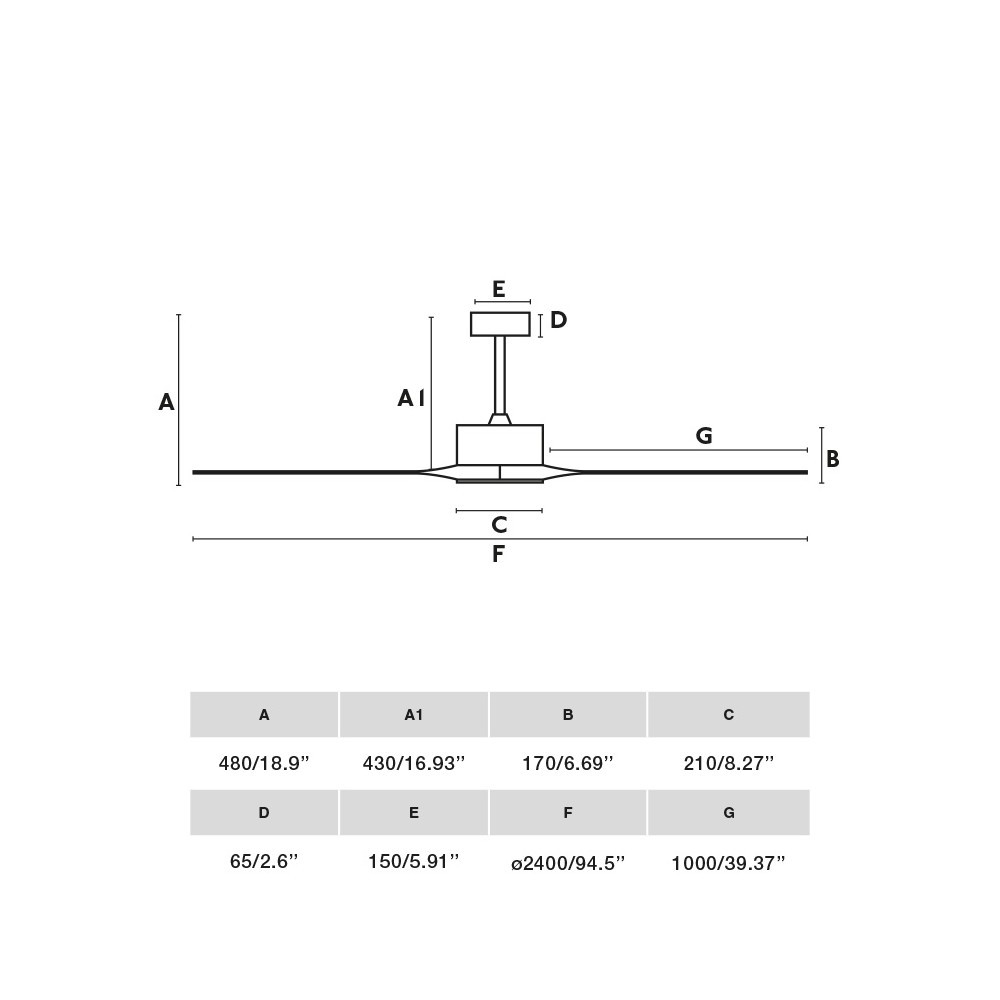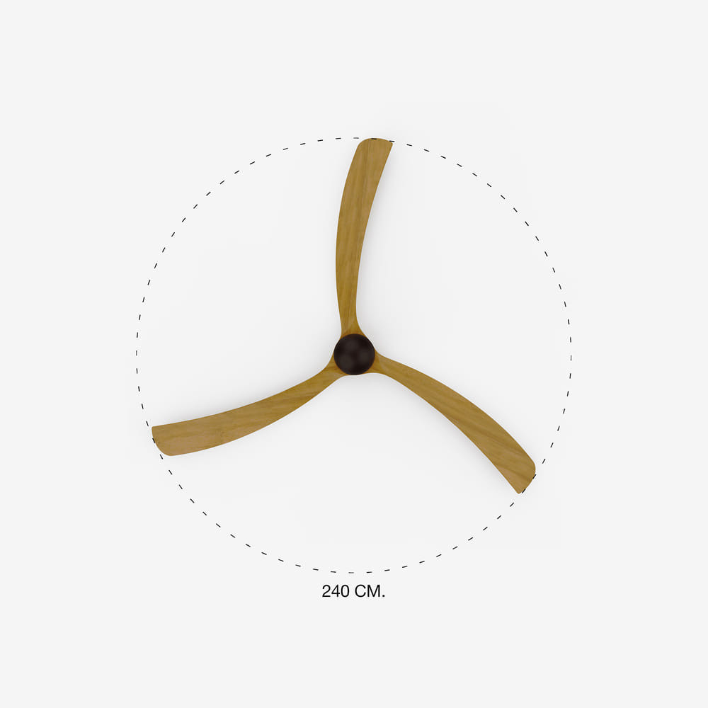 Es muy importante escoger la dimensión correcta del ventilador teniendo en cuenta el tamaño de la estancia. Este ventilador talla "XL" es ideal para estancias superiores a los 28 m² ya que tiene un diámetro de más de Ø165 cm.