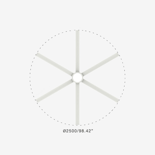Ventilador XXL blanco mate de 2,5 metros de diámetro con motor DC y luz LED. 32W, 3125lm, 3000K, CRI80
